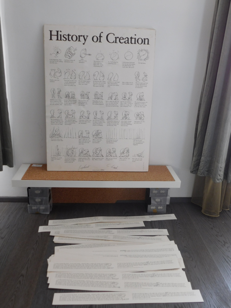 This an one of a kind outdoor installation consist of all 365 prints of the year 1994, wherebythe drawings represent a family in their house, the small print the mortgage lor each house.